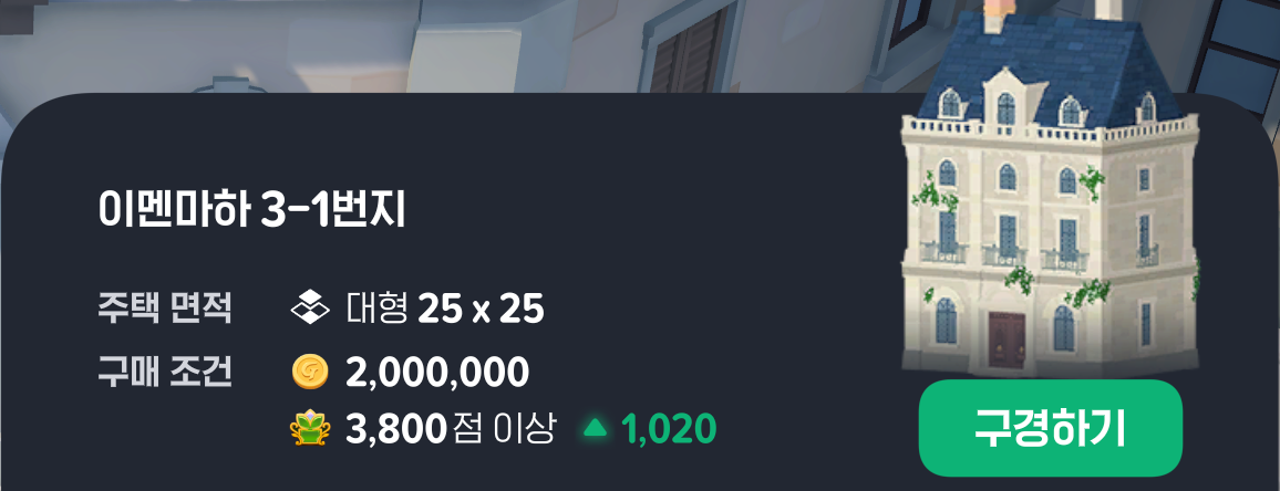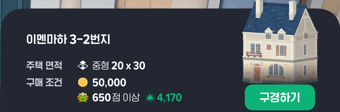 큰 마이홈을 구매하기 위해서는 데코점수가 필요합니다